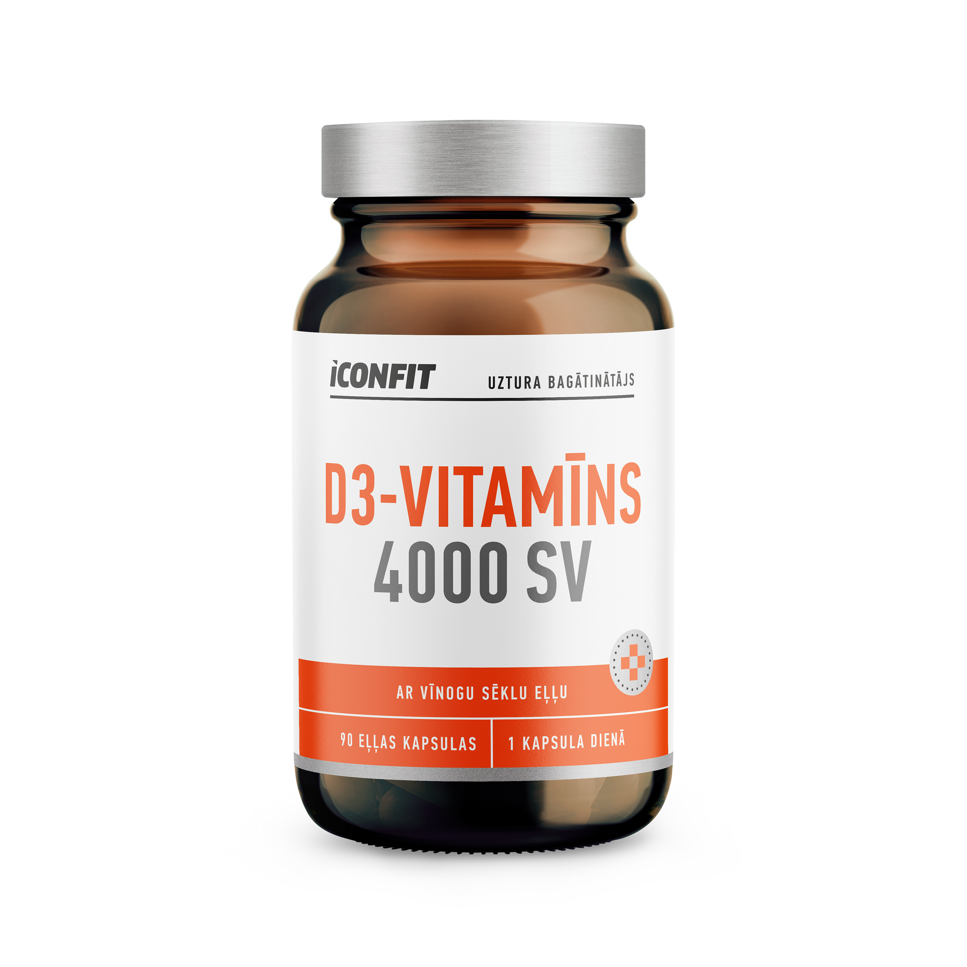 ICONFIT Vitamīns D3 satur augstu D vitamīna devu (4000 SV). Tas ir viens no svarīgākajiem vitamīniem – tas ietekmē visu mūsu orgānu pareizu darbību. Vitamīnam D ir īpaši liela nozīme rudens-ziemas periodā un vecāka gadagājuma cilvēkiem visu gadu. Vitamīns D3 ir nepieciešams, lai uzturētu kaulus, zobus un muskuļus veselus. Tas arī veicina imūnsistēmas normālu darbību. Ražots, izmantojot tikai augstākās kvalitātes eļļas kapsulas.