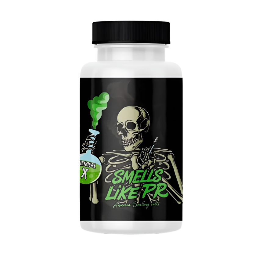 Smells Like PR Chemical X smelling salt is ideal for powerlifting, weightlifting, strongman competitions, and any other form of heavy weightlifting!